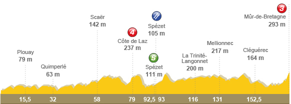 Mañana los corredores se enfrentan al Muro de Bretaña, donde habrá lucha no sólo por la etapa -aquí sí que puede triunfar una escapada, es el momento de mover bien las fichas para conseguir la primer victoria española del giro- sino también en la general. Hay rampas duras en las que se pueden arañar segundos, gran momento para Contador y Sánchez de volver a acercarse a los puestos que encabezan la clasificación.