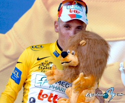 Por otra parte, el primer líder de prácticamente todo (salvo el maillot al mejor jóven que ha reparado en el corredor del Sky Gerain Thomas) es Philippe Gilbert, que vuelve a hacer alarde de su gran estado de forma tras un gran trabajo de su equipo durante toda la etapa y en un mano a mano con un Cancellara que parecía fuera de forma. Habrá que esperar a mañana para verle en su terreno.
